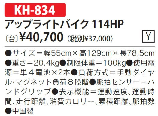 KH-834 アップライトバイク114HP 税別定価¥37000|2024見積依頼: