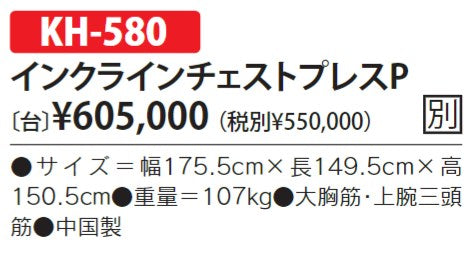 KH-580 インクラインチェストプレスP 税別定価¥550000|2024見積依頼: