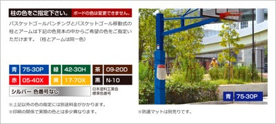 ●ボード:アルミパンチング板、焼付塗装●主柱/アーム:鉄製、メッキ処理後焼付塗装●重量:180kg●アーム・リング直結型●組立式