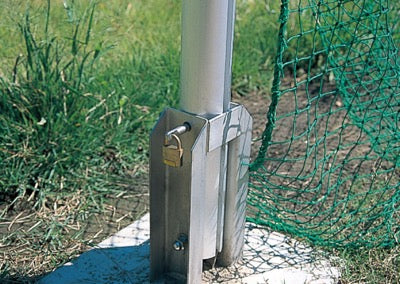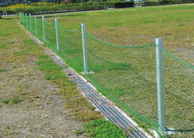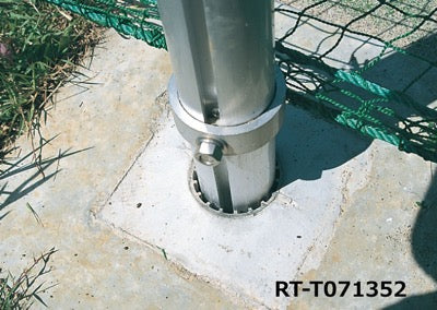 軽量で撤去・設置も簡単に行える錆びにくいアルミ製防球フェンス柱「ルイフェンス」