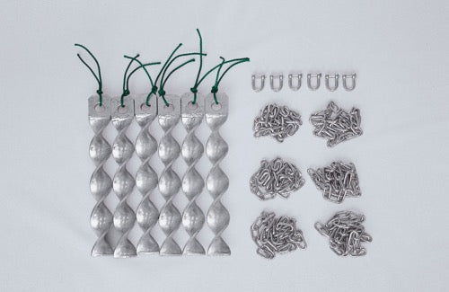 ●杭/鉄製溶融亜鉛メッキ処理●W50×L350×t6mm●チェーン/ステンレス製(シャックル付)●6個/1式●1個1.7kg