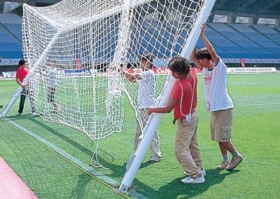 クロスバーの強度を向上させて、たわみを軽減するとともに、軽量化により作業性を大幅に向上。 国内主要サッカースタジアムで数多くの納入実績がございます。メーカー名:ルイ高スポーツと社会との関わりを考える上で、「品質」・「安全」・「環境」の3つのテーマを掲げ、製品開発に取り組んでいます。また、軽量で安全、環境負荷の少ないアルミ製品を積極的に採用しています。