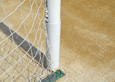 アルミ製で軽く、河川敷に適した転倒式ゴール