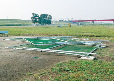 ●枠/アルミ合金製、アルマイト処理後電着塗装●埋設部/ステンレス製●ネット/ポリエチレン製●太さ440T/90本有結節●H4070×W10000mm●52kg●組立式