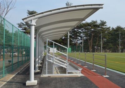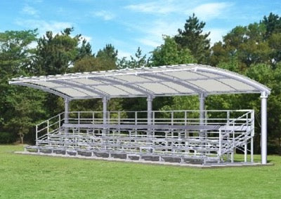 ルイ・ステージ30人掛けを覆うことのできる大型シェルターです。 屋根材は不燃材を使用、UVカットで真夏の直射日光をさえぎります。メーカー名:ルイ高スポーツと社会との関わりを考える上で、「品質」・「安全」・「環境」の3つのテーマを掲げ、製品開発に取り組んでいます。また、軽量で安全、環境負荷の少ないアルミ製品を積極的に採用しています。